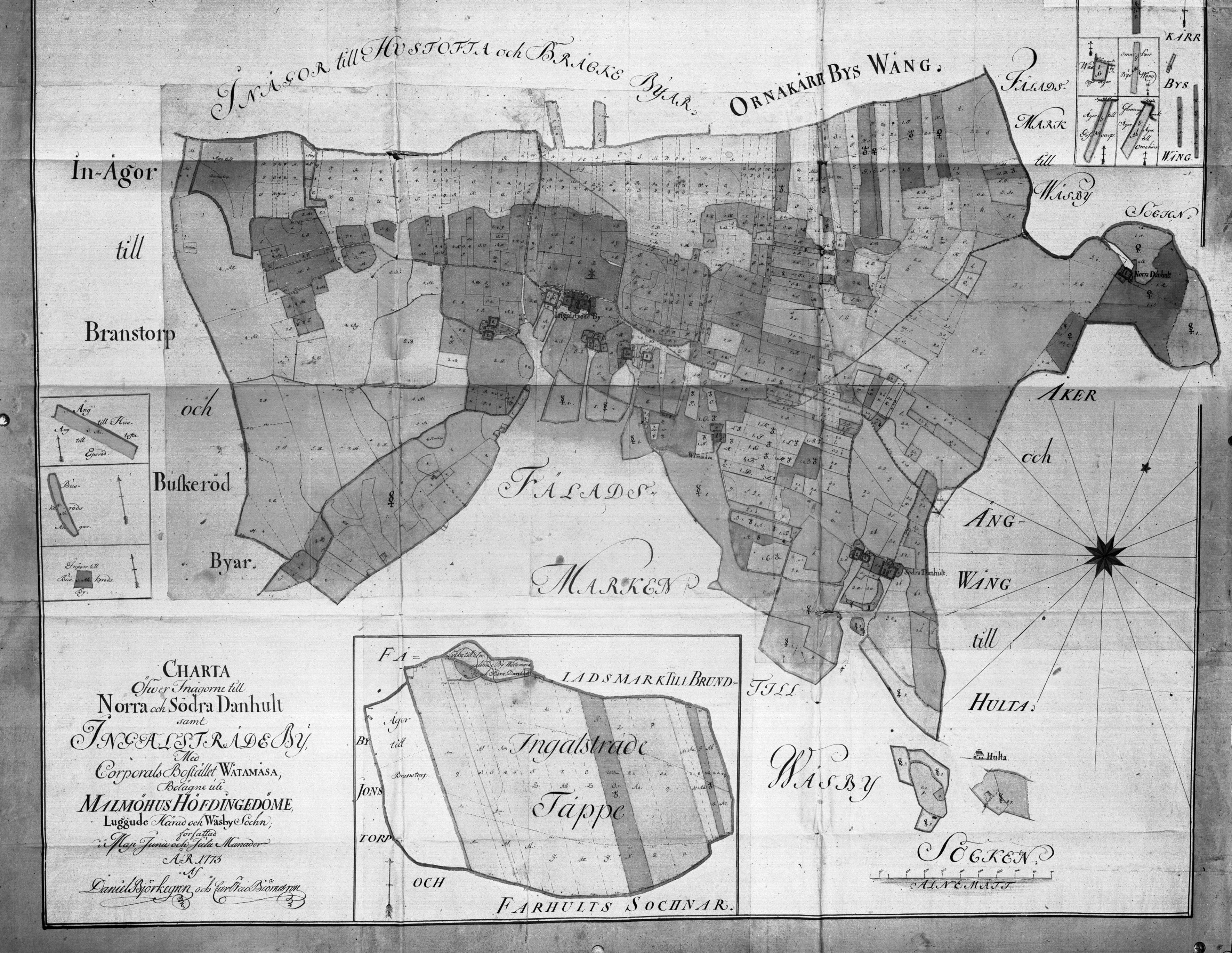 Karta över norra och södra Danhult, Malmö lantmäterikontor, Rekt. Edvard Nilsson Höganäs
