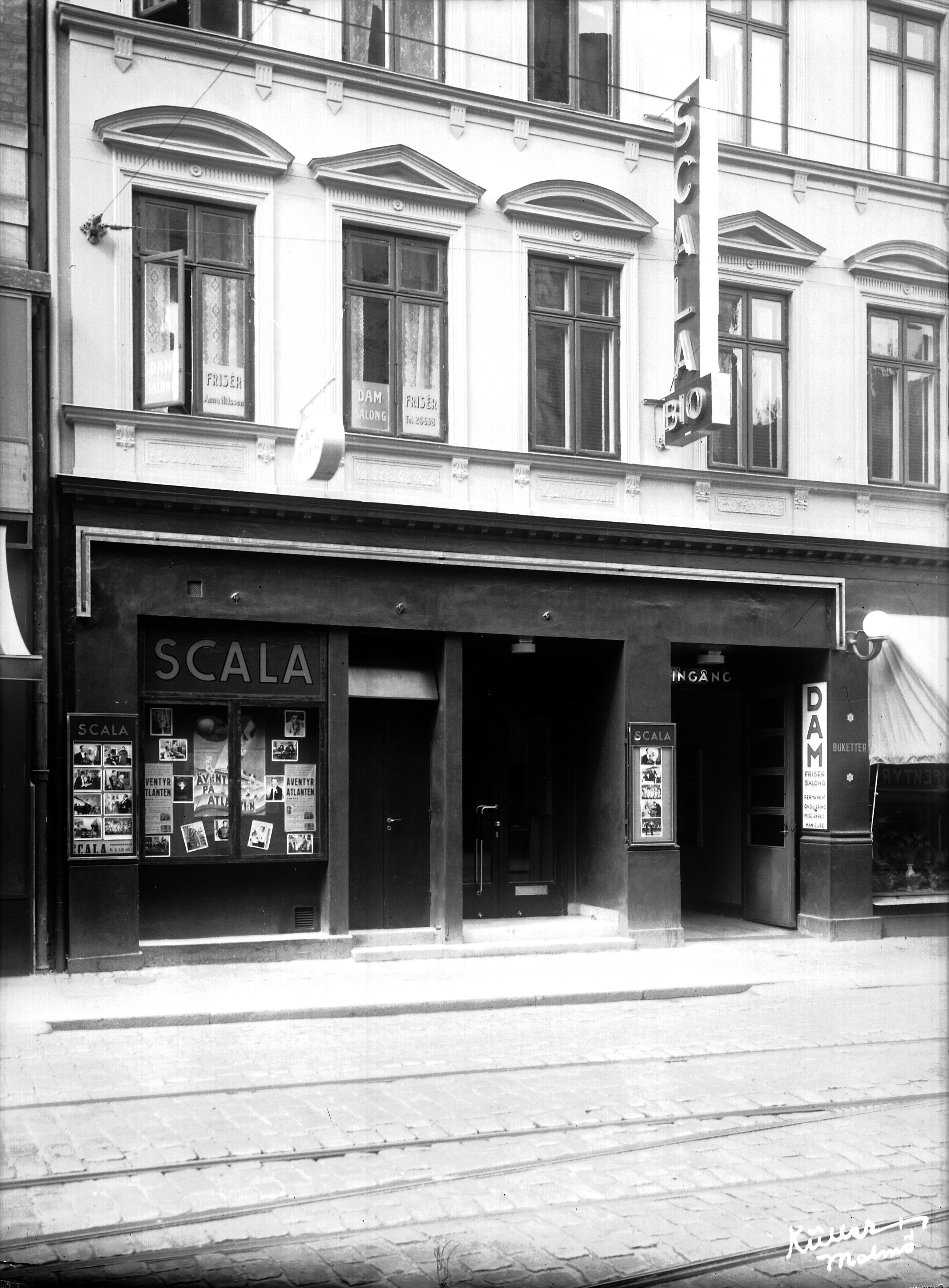 Exteriörbild av Scala- biografen. (Filmen "Äventyr på Atlanden")