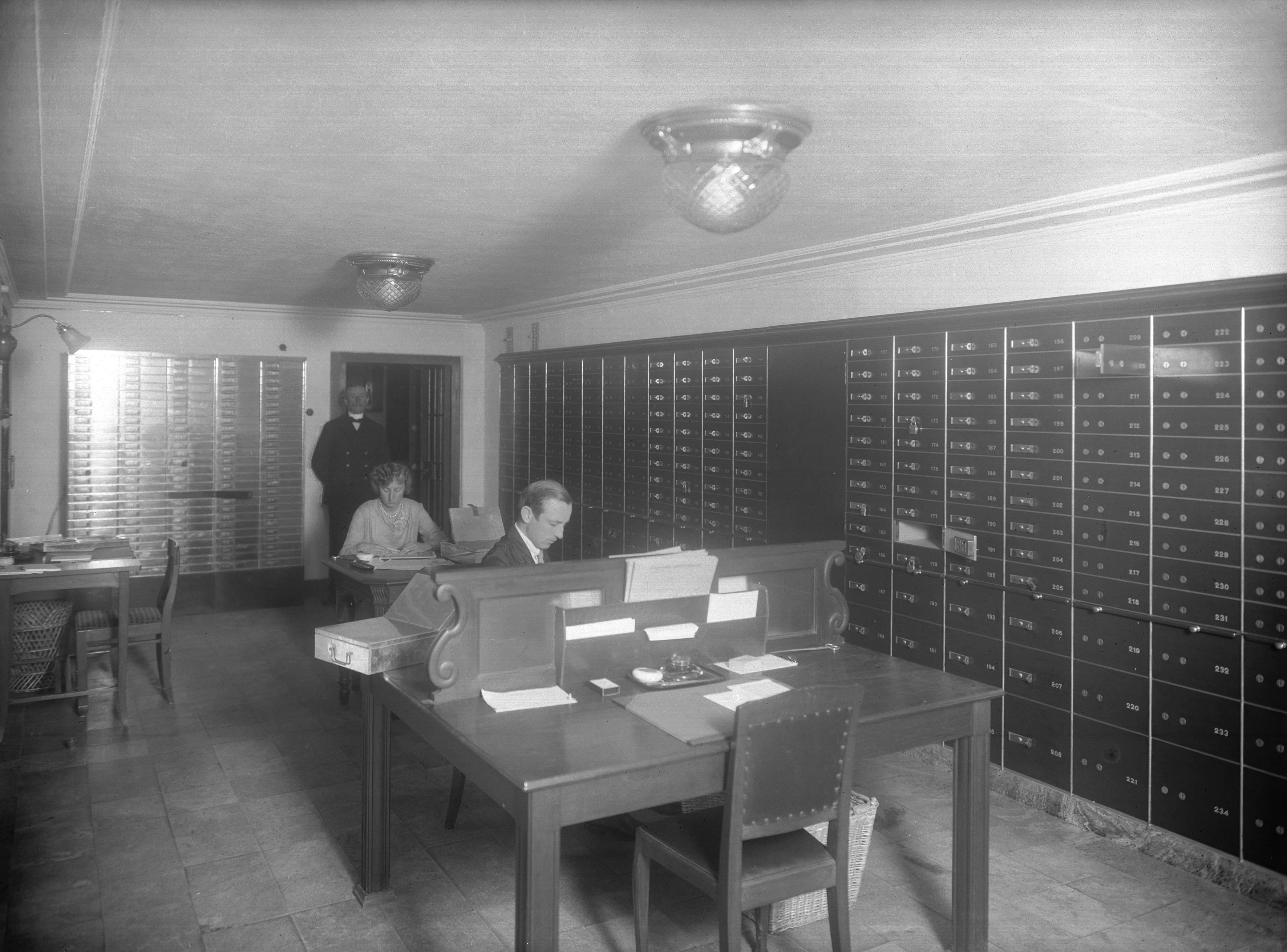 Interiörbild från Skandinaviska Kredit AB Skandinaviska banken, Bruksgatan.