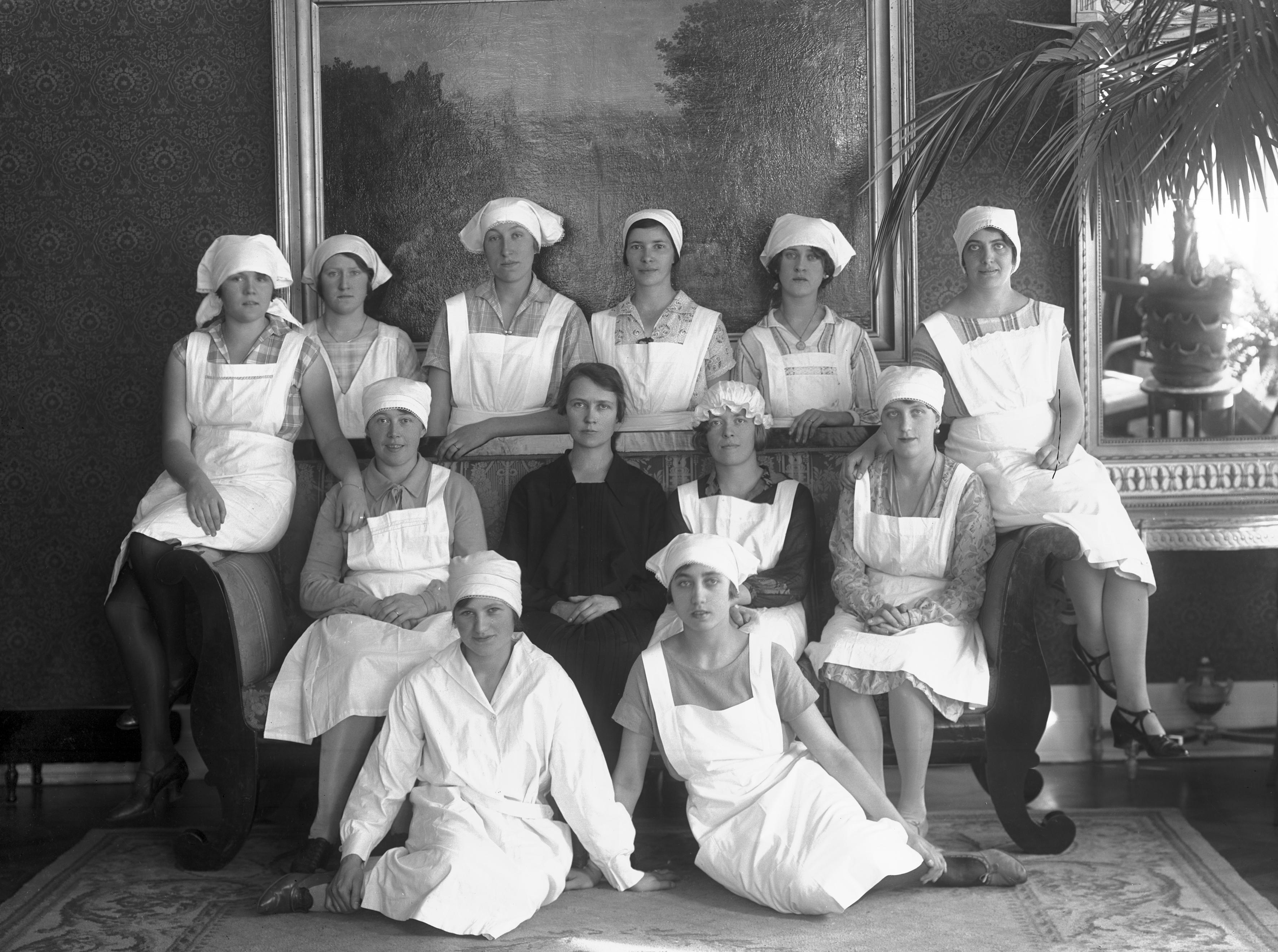 Gruppbild, elever från Hushållsskolan Margareta, Södergatan 32.