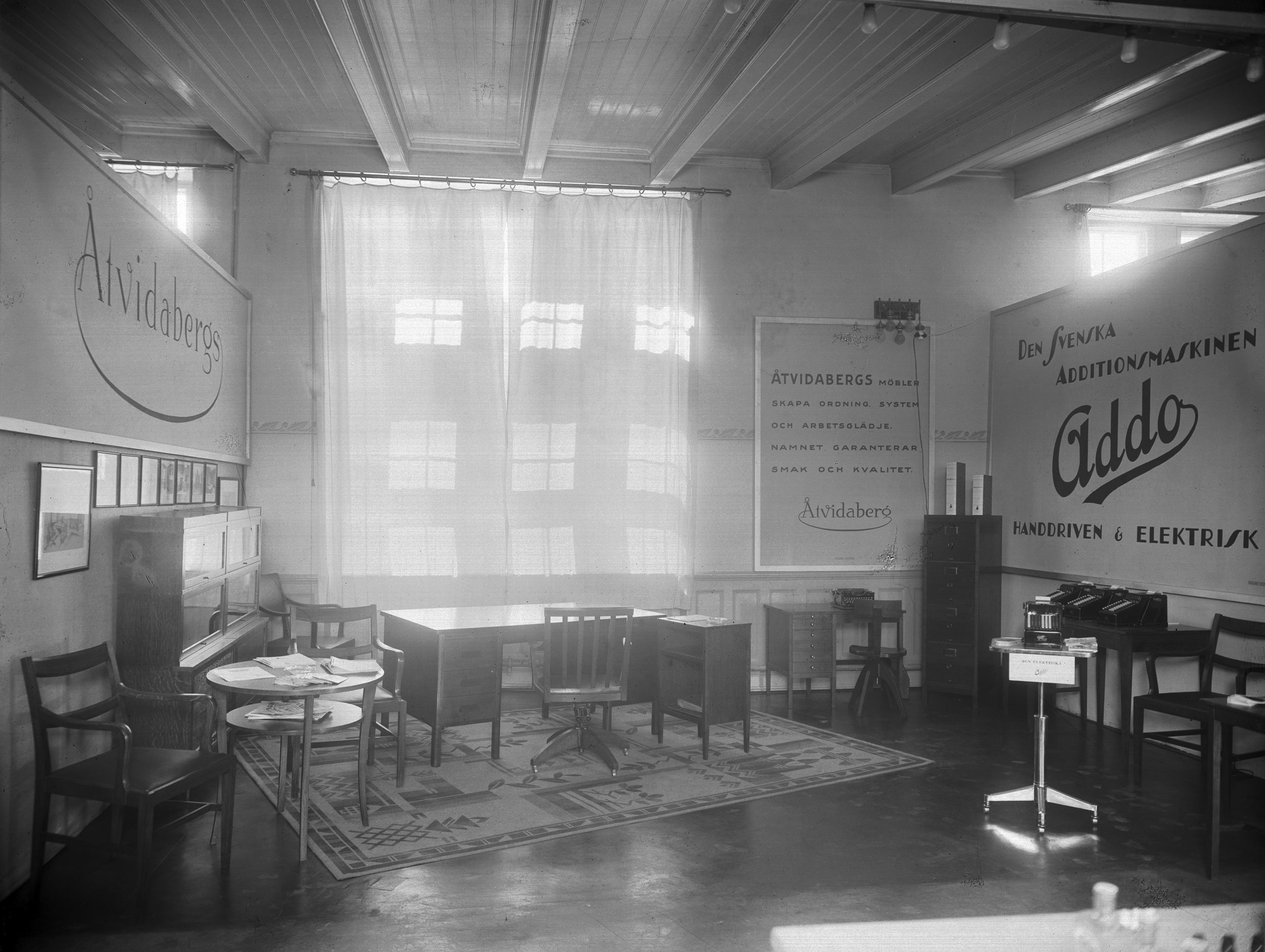 Skånemässan: Åtvidabergs möbler och Addo, den svenska Additions-maskinen.