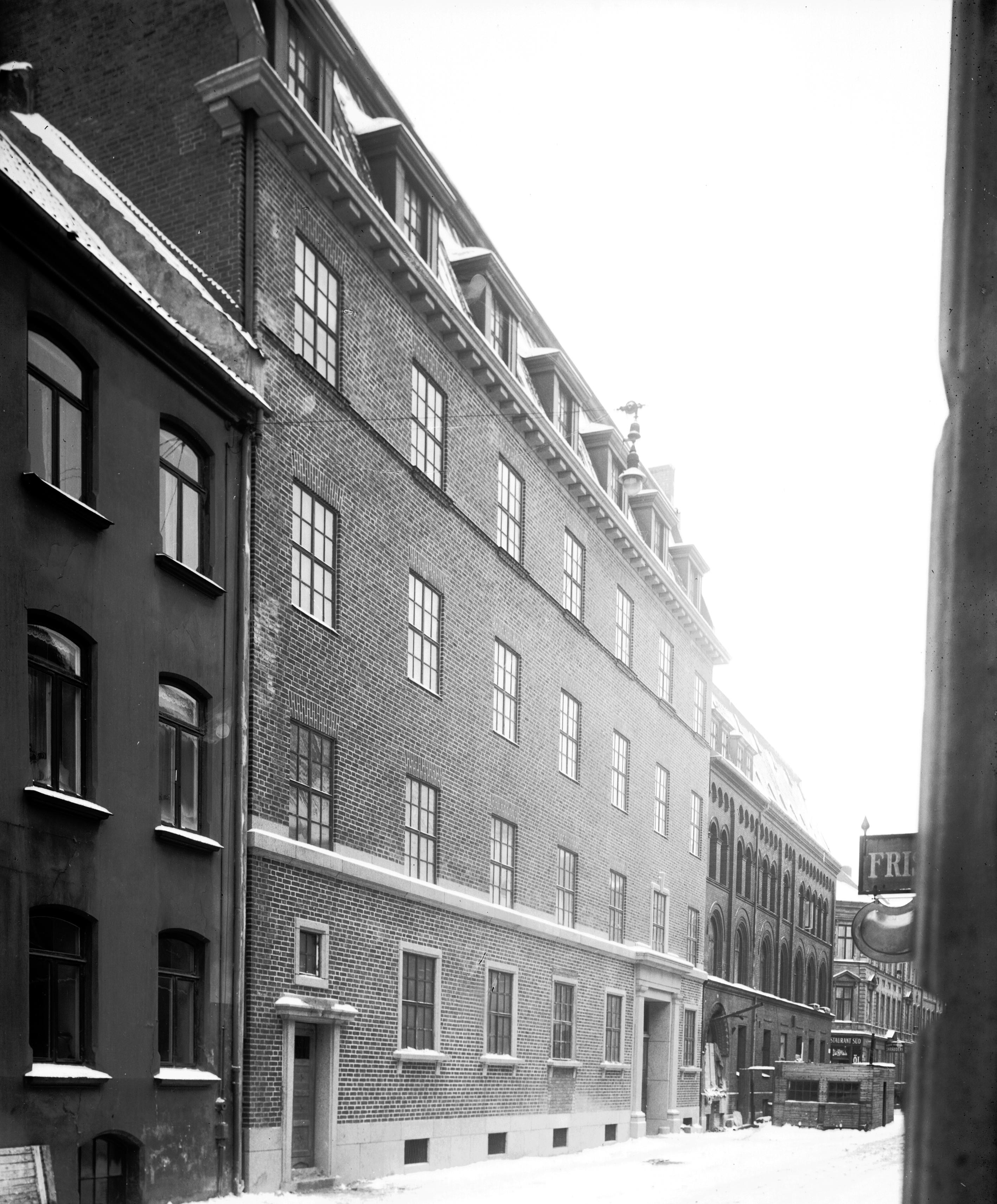 - Västergatan med Tobaksmonopolet (Kockums tobaksfabrik på Mäster Johansgatan 4), exteriörbild.
