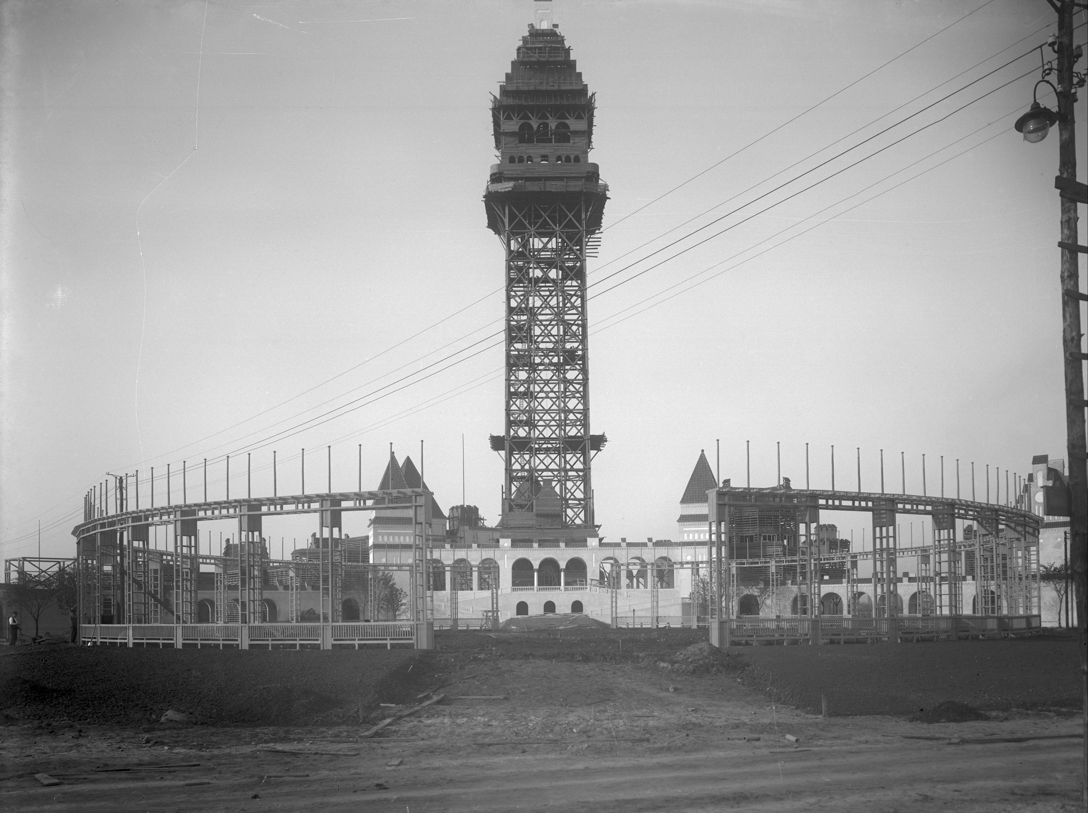 Byggandet av Baltiska utställningen. Centralgården mot Stora Tornet den 13 maj 1913.