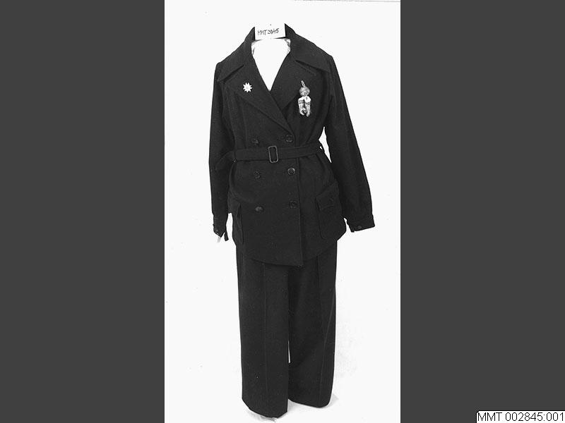 Jacka till skiddräkt av blått ylletyg, rak modell, höftlång,