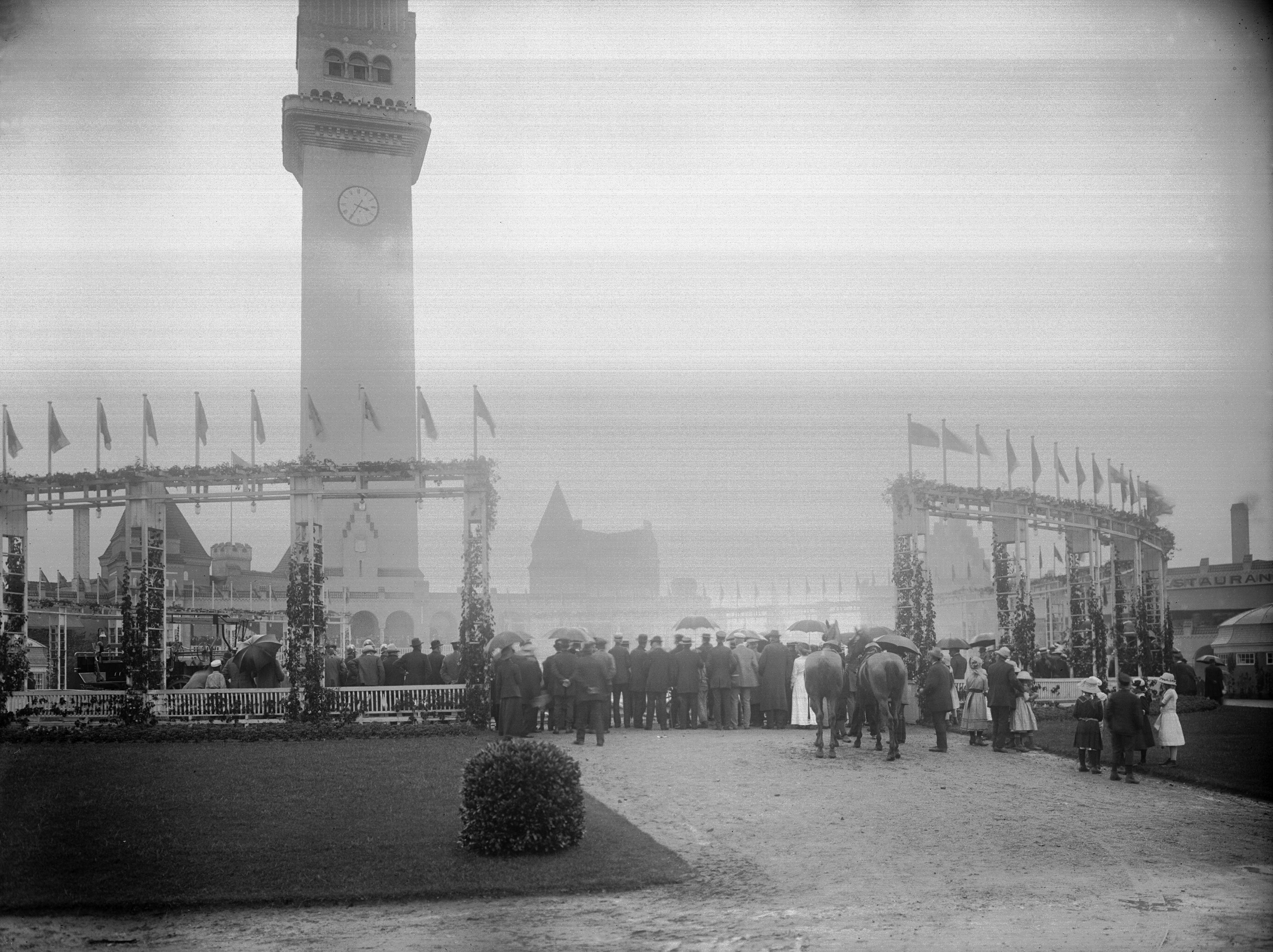 EM 002721 :: utställning, brandväsen, ur, häst, paraply
