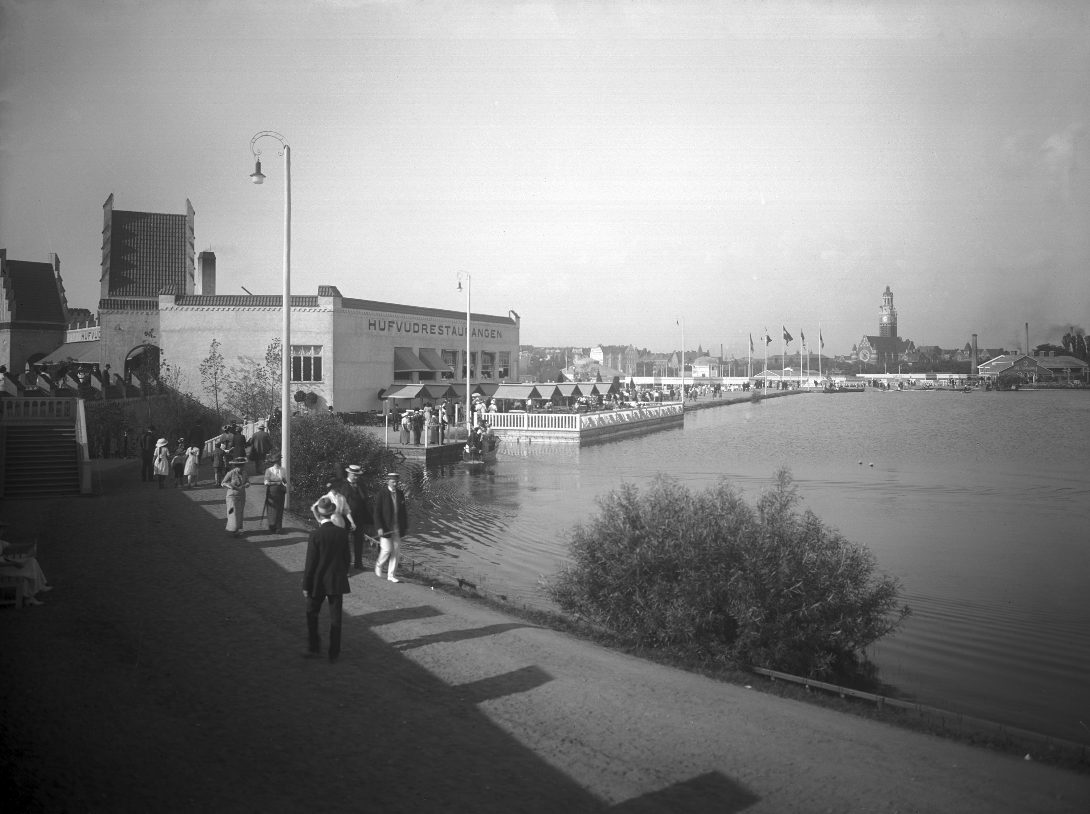 EM 002833 :: utställning, kyrka, restaurang, utomhusbelysning, damm, nationalflagga