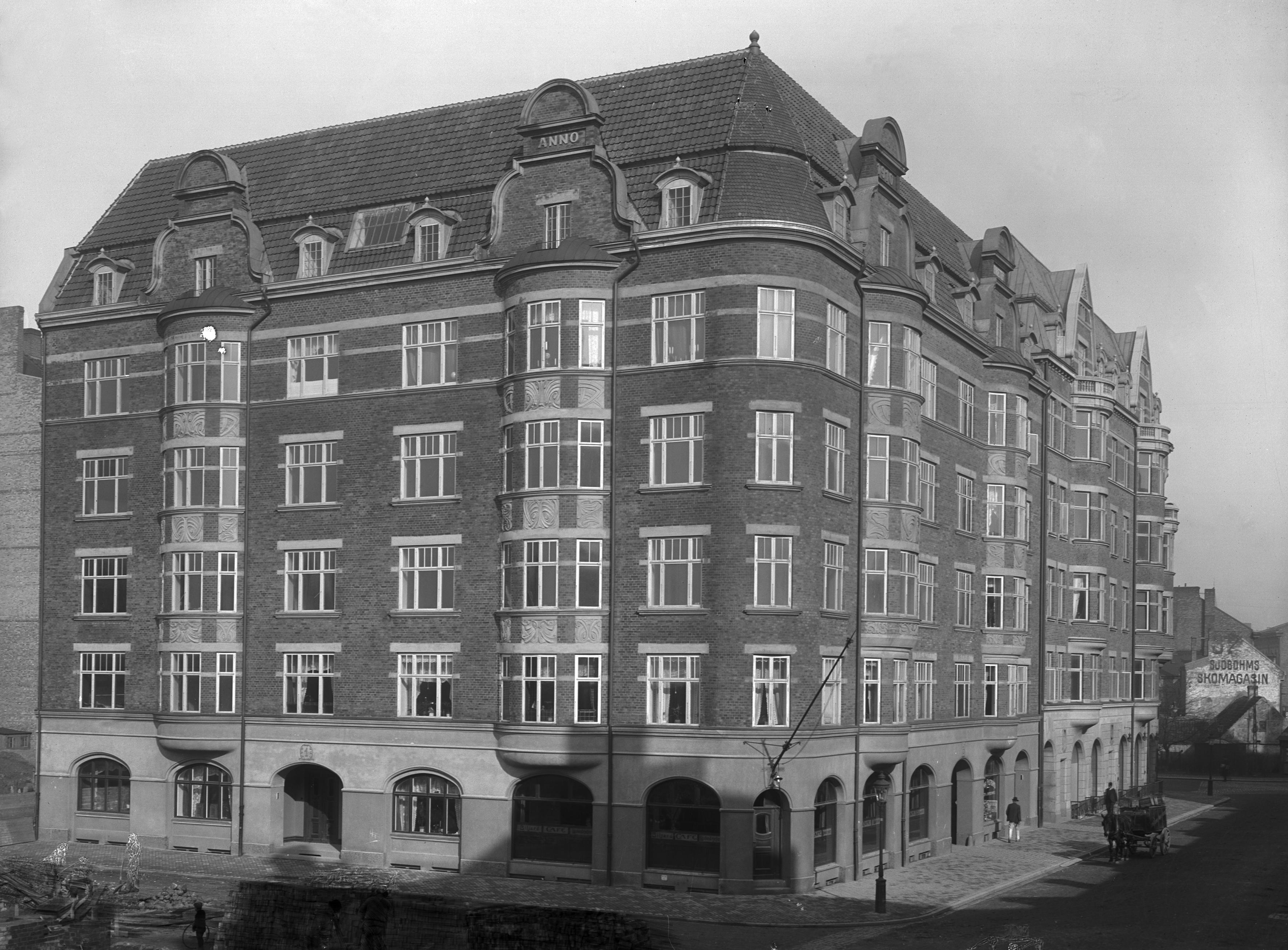 - Hörnhus på Klostergatan – Rådmansgatan (då Pildammsvägen), kvarteret Klostret.