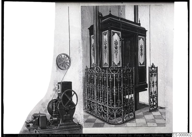 Ritning av en hiss till AB Arlöfs Mekaniska Verkstad