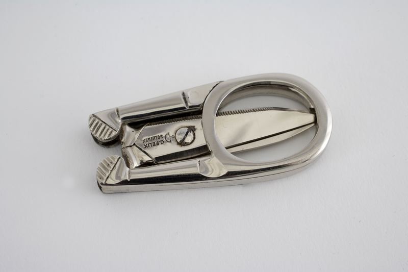 Sax. Hopfällbar, av vitmetall.