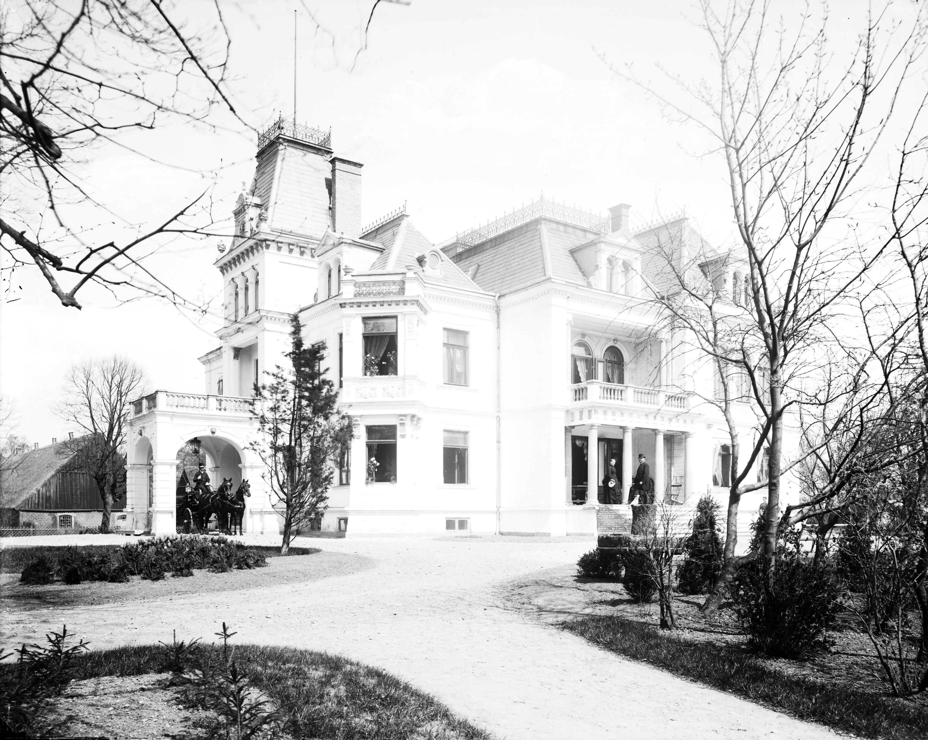 - Bulltofta gård med folk på verandan och hästekipage i portgången. Byggnaden uppfördes år 1884 av ägaren till Bulltofta gård Ludvig Kockum och hans fru Lotten Kockum, född Halling. Efter Ludvig Kockums död år 1905 innehades gården av hans hustru, och efter hennes död år 1912 övergick den till makarnas fosterson herr Anton Werner. Denne avled redan år 1915, och äganderätten övergick då till hans och hans hustru, Ellen Werner, född Herslow, enda barn Carl Ludvig Werner.
