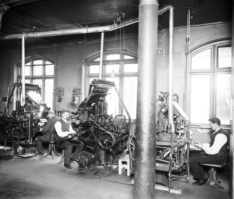 Interiörbild från tidningssätteri - Skånska Dagbladet.