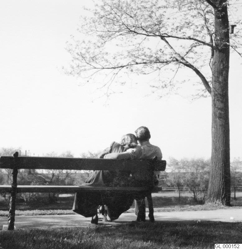 Förälskat par på parkbänken