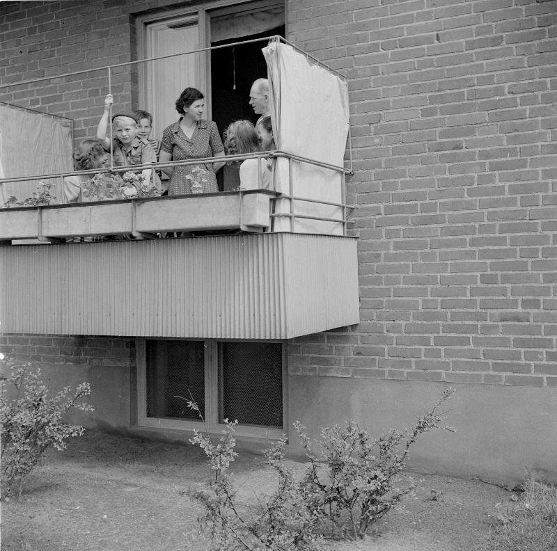 Familj på balkongen.