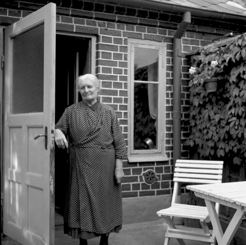 Kvinna i dörren mot bakgård