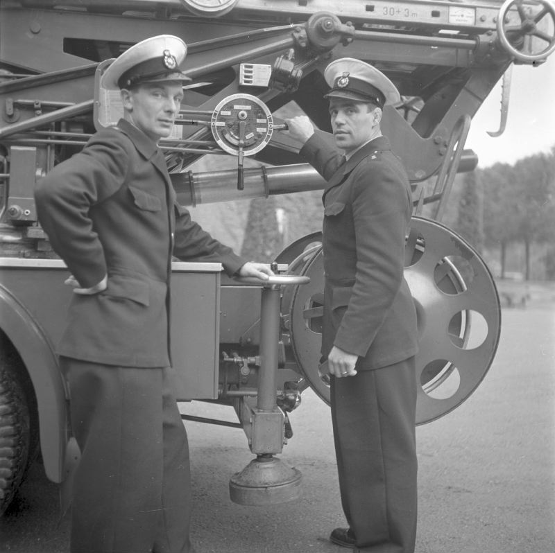 Brandmän vid brandkårens stegbil