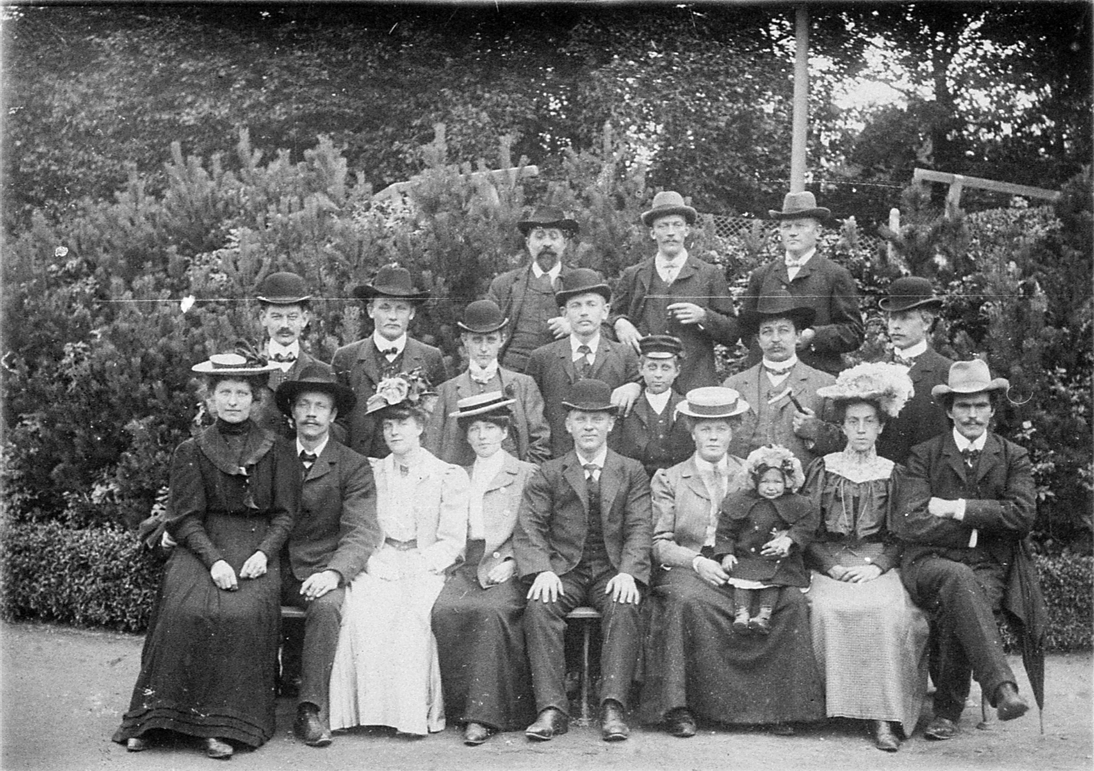 Gruppbild i en park, byggnadsarbetare.