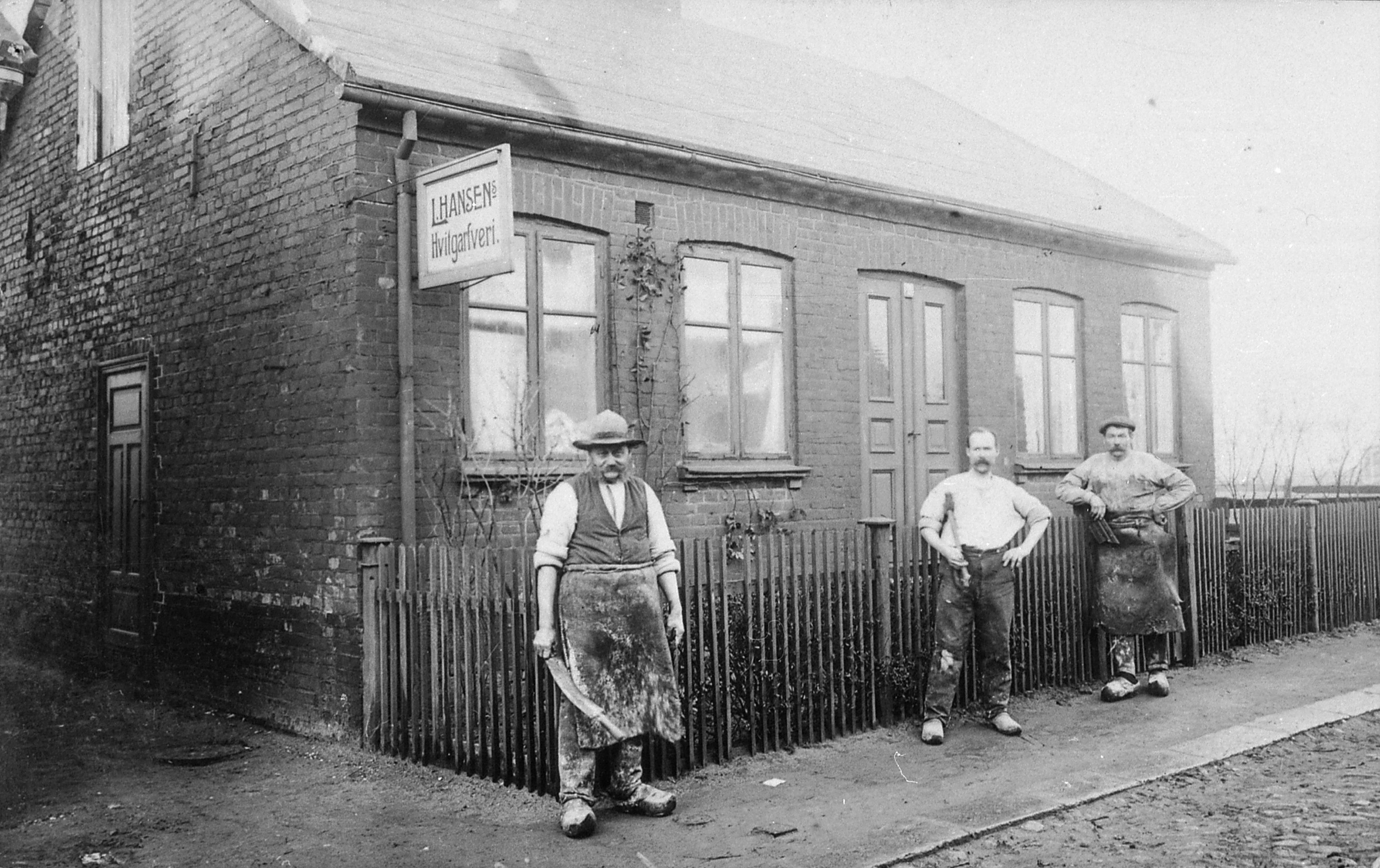 Garvare L. Hansen med sin medhjälpare. Garvaren och stollaren.