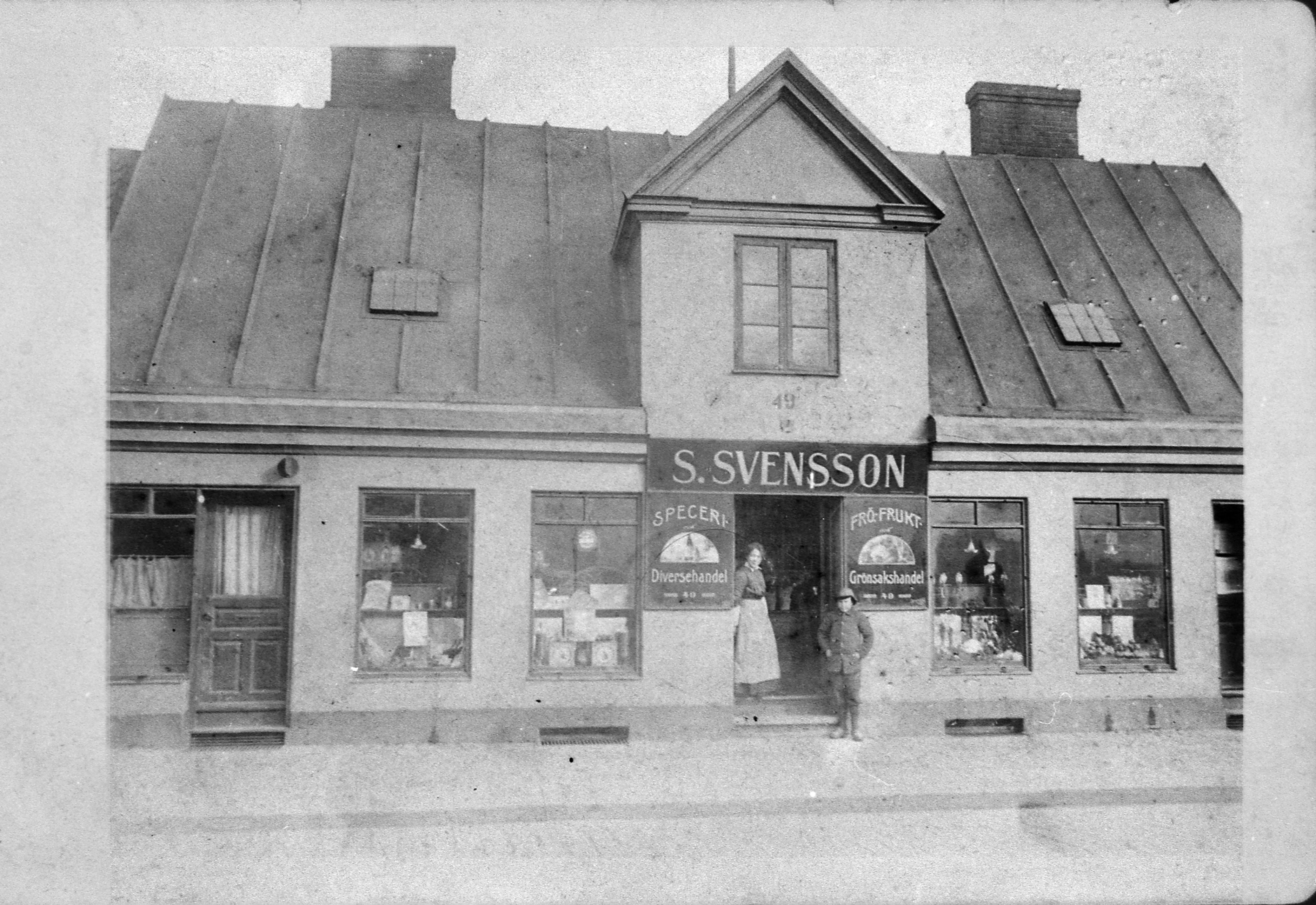 - S Svenssons speceriaffär vid hörnet Östra Förstadsgatan 49-Västra Dalgatan (numera Drottninggatans förlängning).
