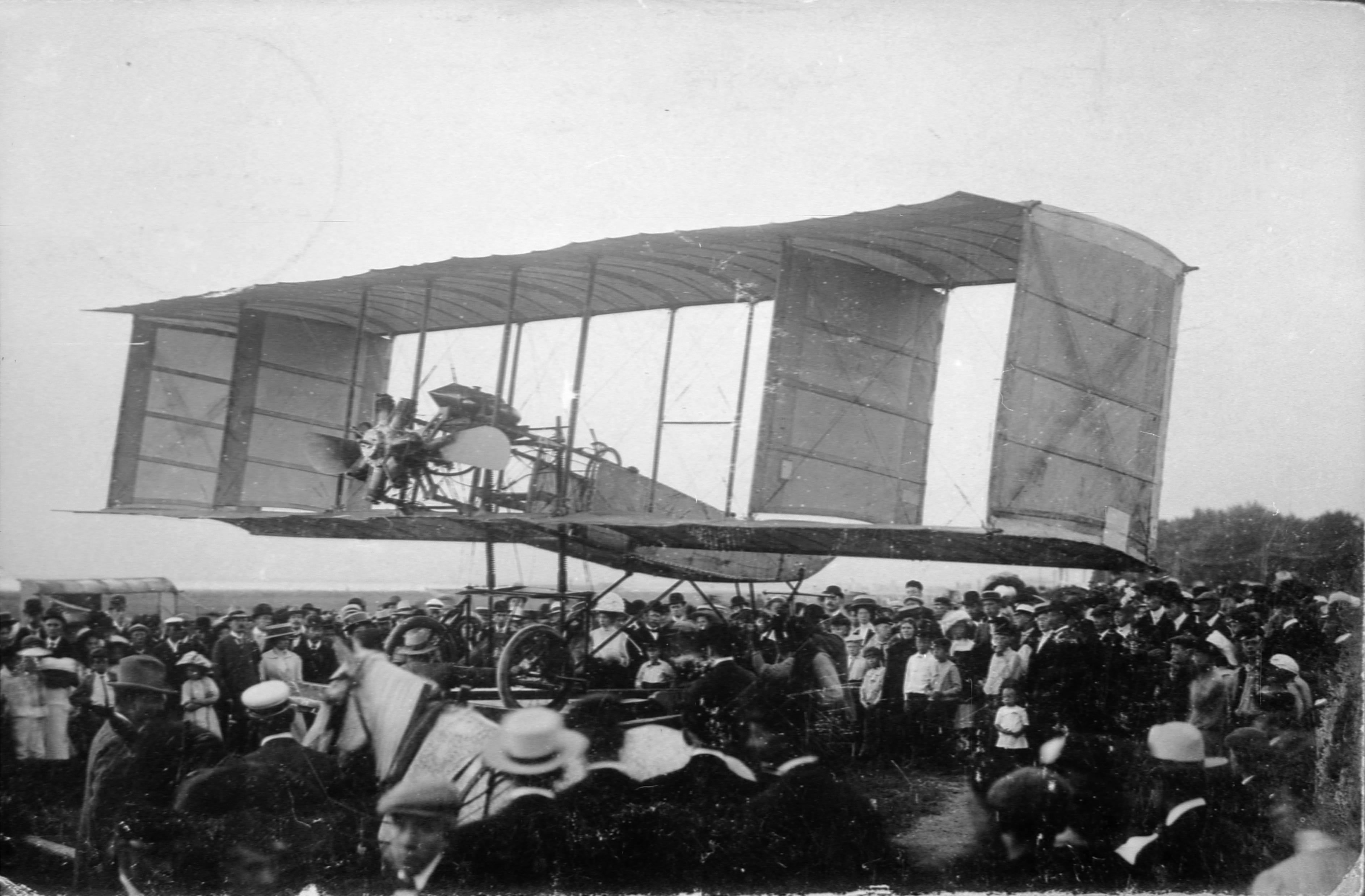 Voisin-flygplan transporteras bort efter Robert Svendsens Öresundsflygning, 17 juli 1910