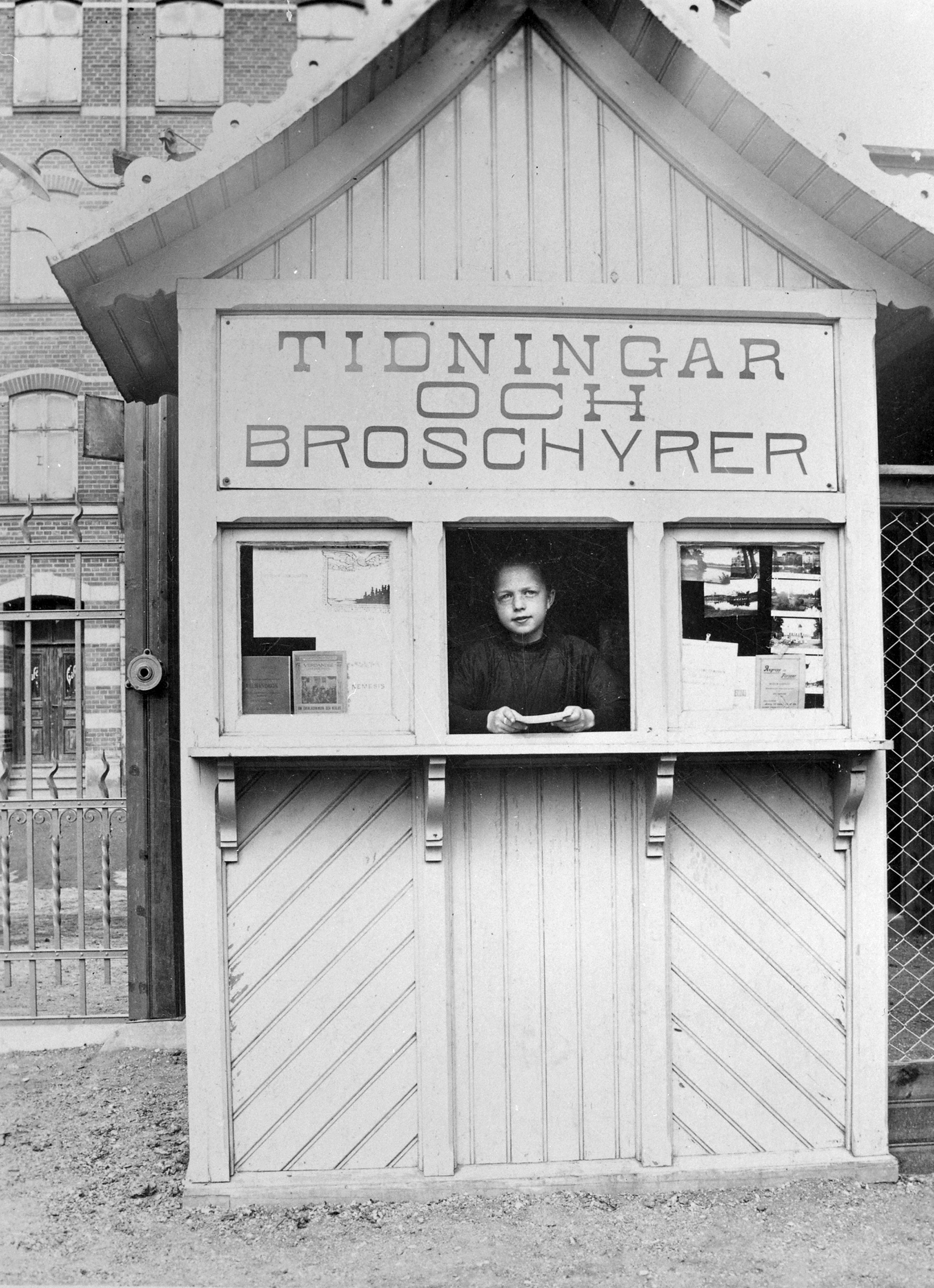 Kiosk med tidningar och broschyrer.