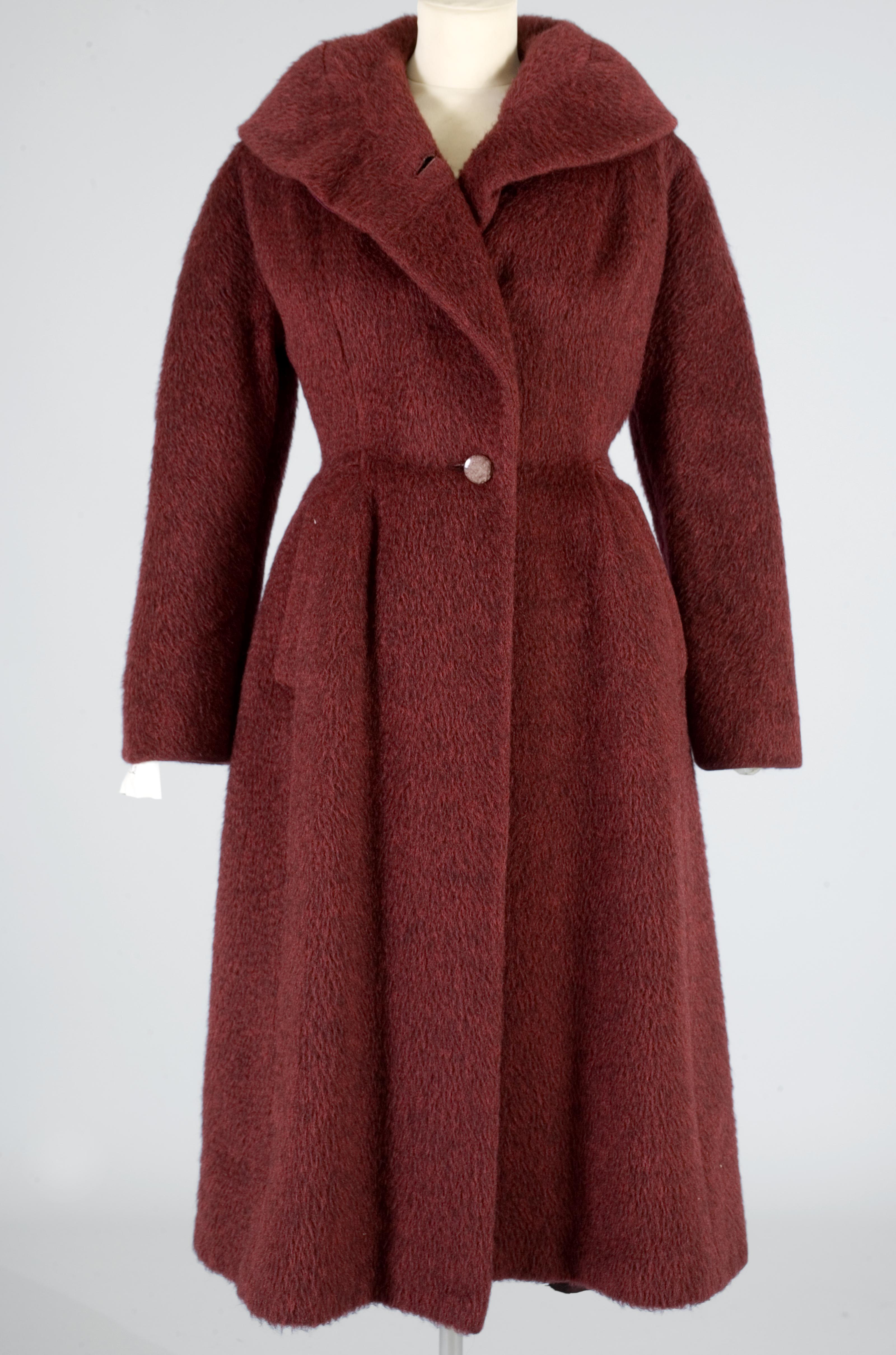 schalkrage, raglanärm, insvängd midja och stolpfickor. Knäppt fram med