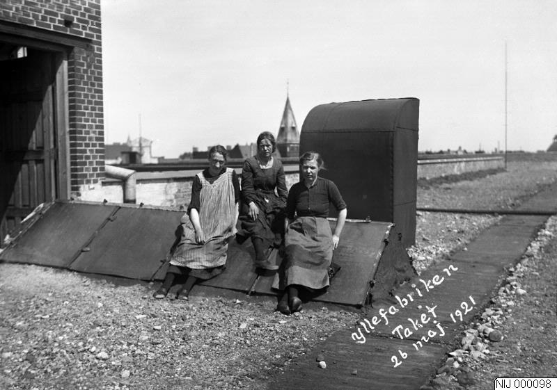 26.5 1921 Tre kvinnor på taket till Malmö Yllefabrik