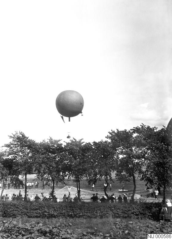 Luftballongen Breslau med tysk flagga och Dr Hornecker, Dr Halben, Red. Nyström, Kamann