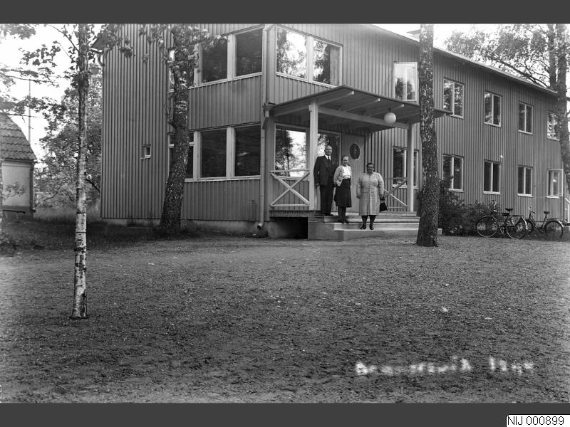 Tvåvåningshus, tre människor på en trappa Södermanland