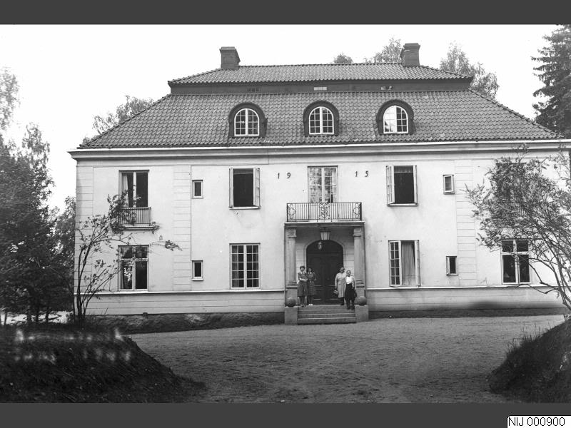 Juni. Villa byggd 1915, fyra människor på trappan, Södermanland