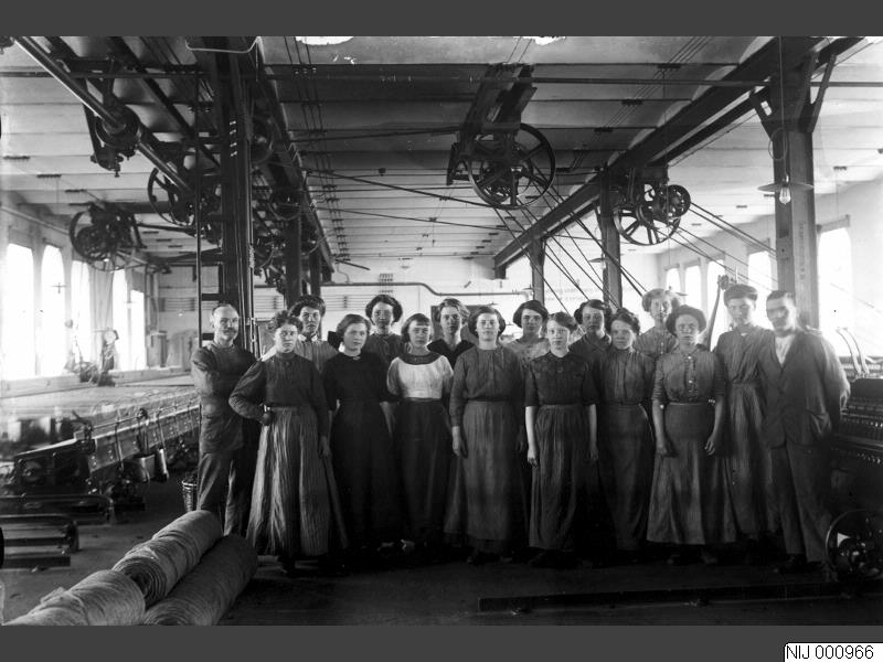 textilindustri; textilindustripersonal; grupporträtt; inomhusbelysning