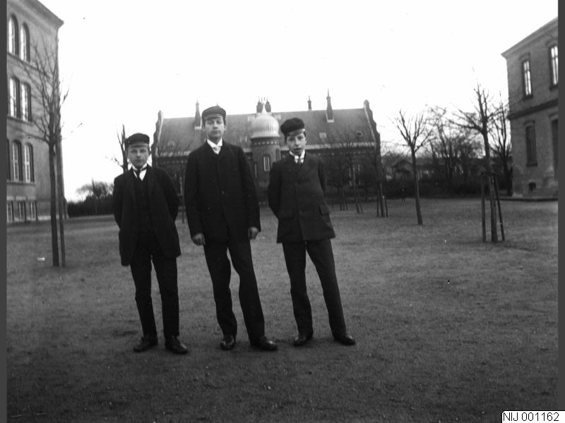 Malmö. Östra Förstadsskolan och Rörsjöskolan. Tre pojkar på skolgården