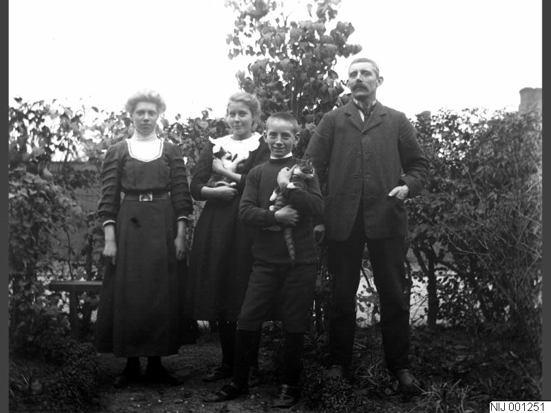 NIJ 001251 :: familjeporträtt, katt, familj, trädgård