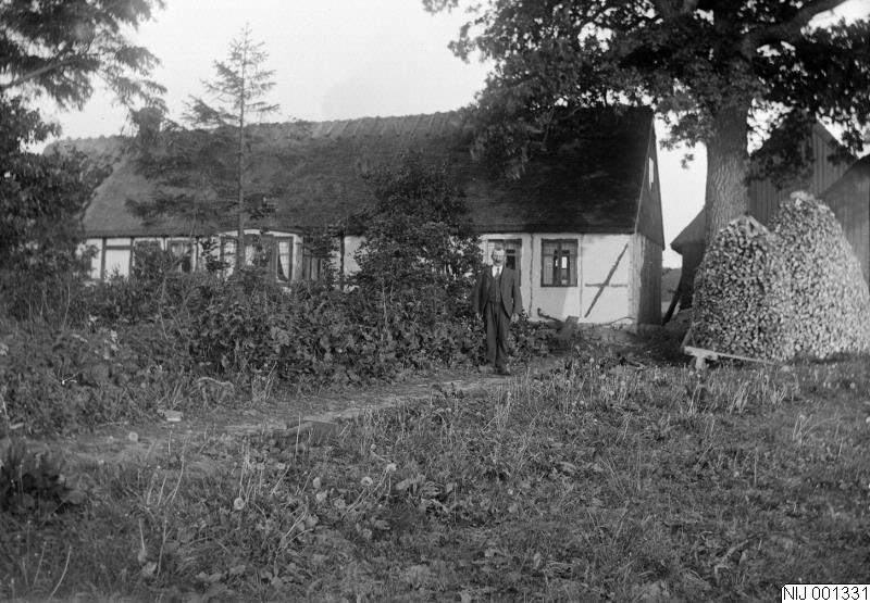 NIJ 001331 :: korsvirkeshus, vedtrave, halmtak, träd