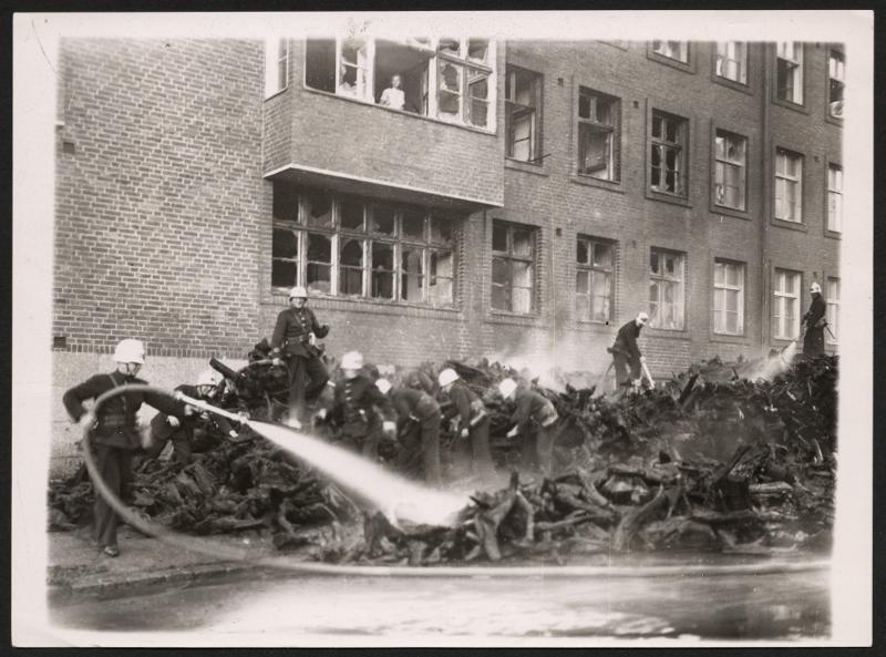 " Vedstaplar vid Helmfeldsgatan brann upp,fönsterrutorna sprack av värmen ", släckningsarbete