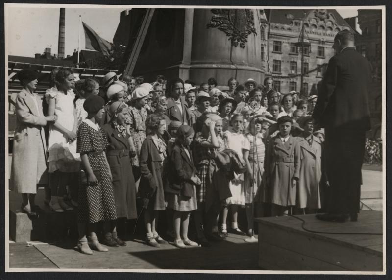 5/6/36. Barnens Dag. Folkförskollärare Wrahme leder barnkören vid konserten på Bialitt.