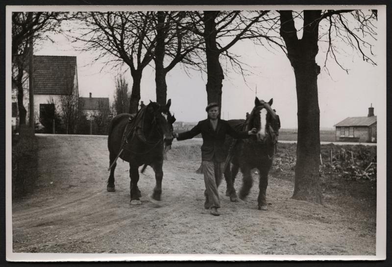 Dräng med 2 hästar på väg till stallet, 13/12 Tygelsjö bosättning