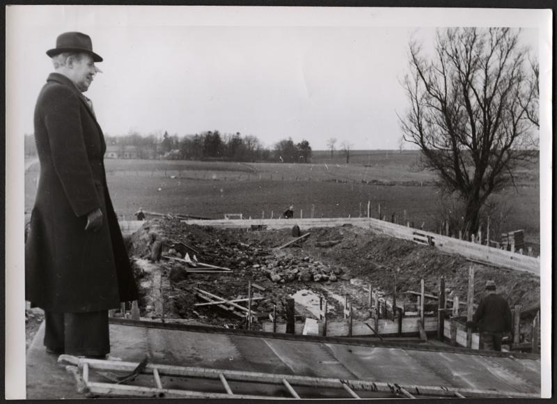 Ingvar Granhall vid byggnadsplatsen, 25/1 1944 Linlaboratoriet i Svalöv