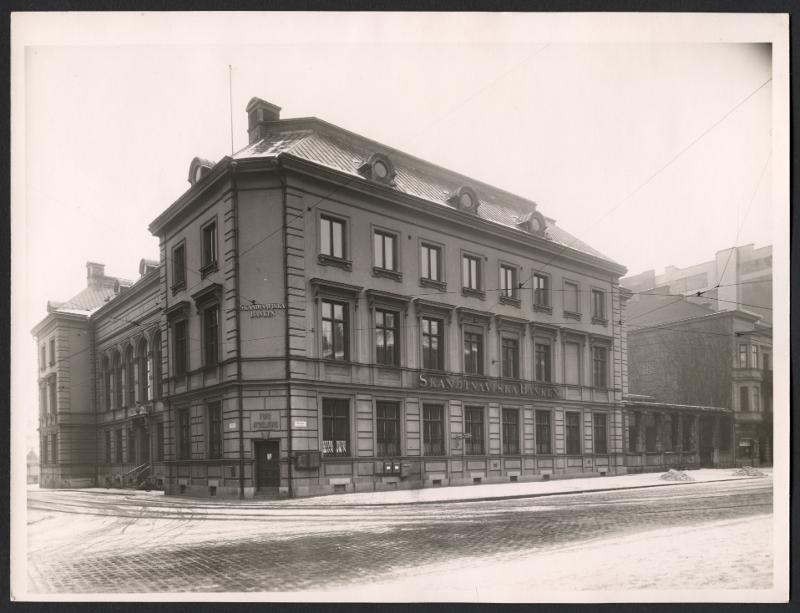 Flervåningshus, Skandinaviska Banken Gatubild,vinterbild.