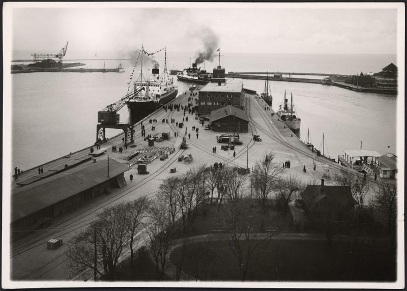 Vy över Ångbåtsbron eller Skeppsbron Hamnliv
