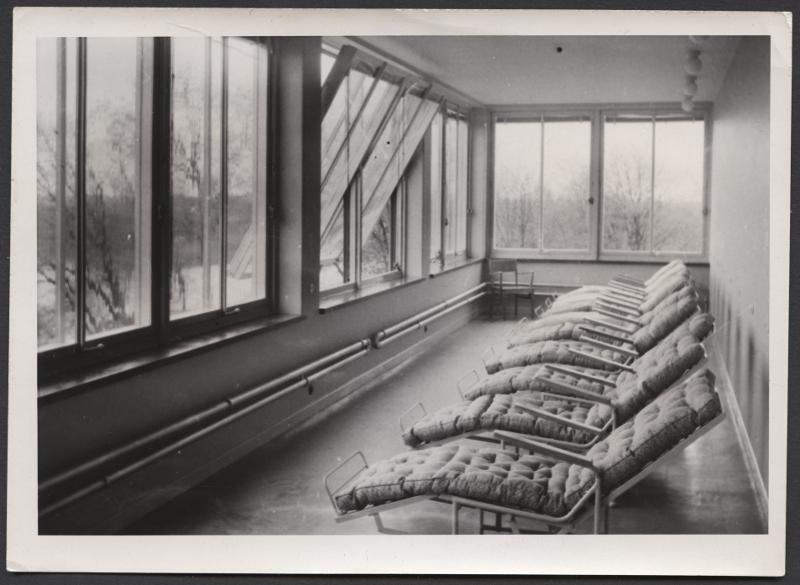 Lungkliniken i Malmö inviges den 3 maj. En av de åtta ljusa o trivsamma ligghallarna.30-4-46.