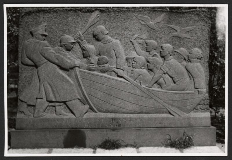 Minnestenen finns i Helsingborg vid Rådhuset. skänktes till Helsingborg (Sverige?) efter kriget som tack för mottagandet av flyktingar.