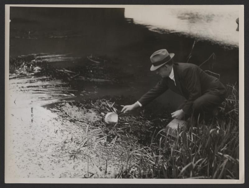 Fiskeritillsyningsman Adolf Larsson tar prov på