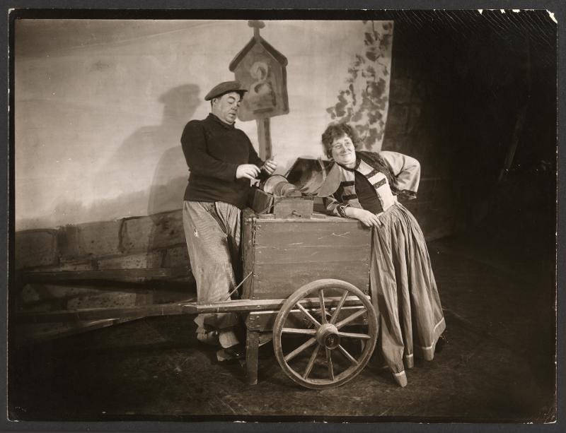 Scenbild-par vid kärra, Edvard Persson slipar knivar