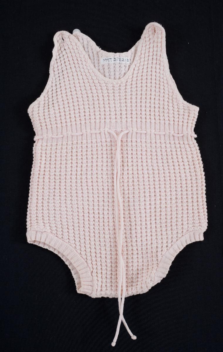 Sparkdräkt rosa mönsterstickad bomull med knytband i midjan, knäppning på
