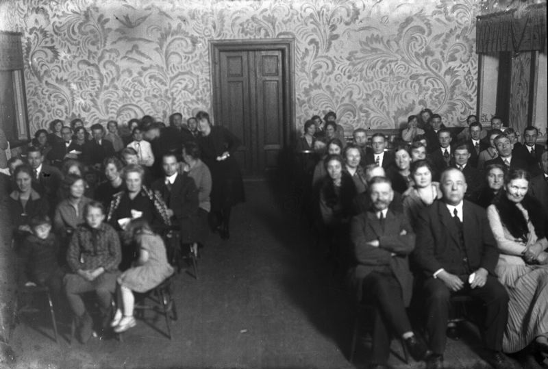 Interiör från teatersalong. Åskådare. Rosenvång.