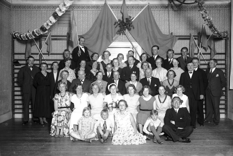 Gruppbild. Svenska flaggor. Willén.