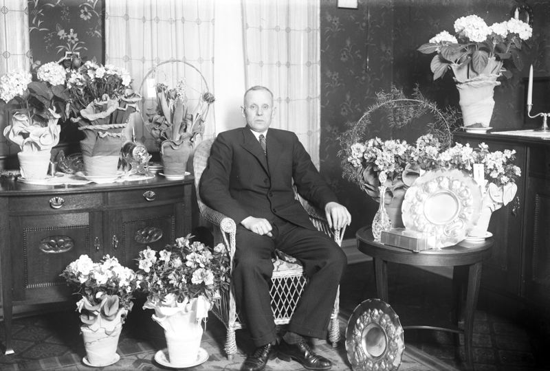 Man med blomstergåvor. Lydia.