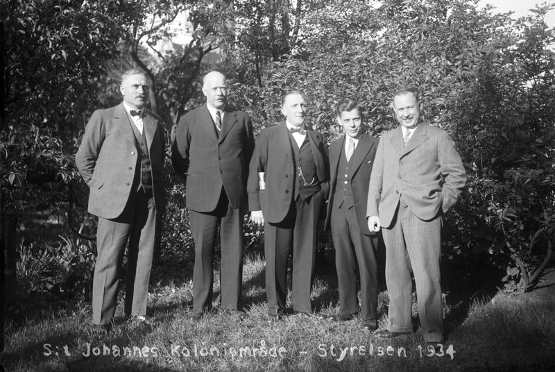 S:t Johannes koloniområde 25-årsjubileum. Fem män i styrelsen 1934.