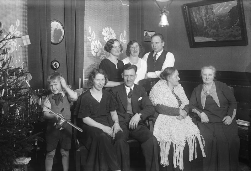 Familjerna Bellander och Hallström på Simrishamnsgatan, Malmö. Se tidigare bild för namn på personerna.
