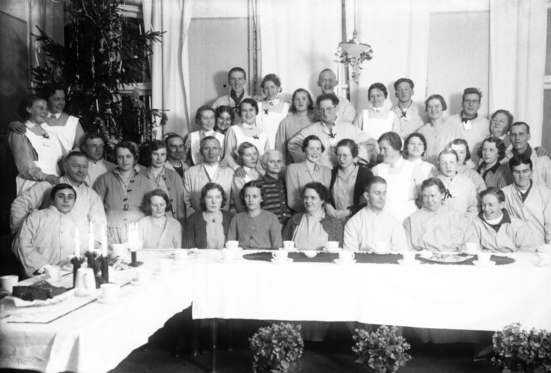 Malmö. Allmänna Sjukhuset Avd 6B. Patienter och sjuksköterskor. Julgran.